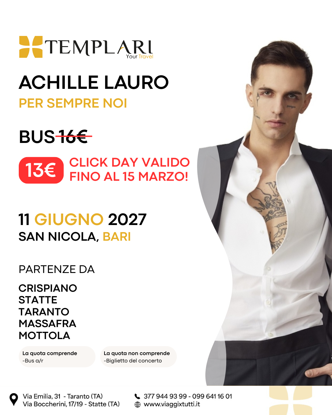 Achille Lauro rappresenta una nuova visione di musica e spettacolo, dove l’originalità è protagonista assoluta. I suoi eventi sono un richiamo irresistibile per chi ama l’arte senza limiti, la sperimentazione e le emozioni forti. Un’esperienza da vivere fino in fondo.