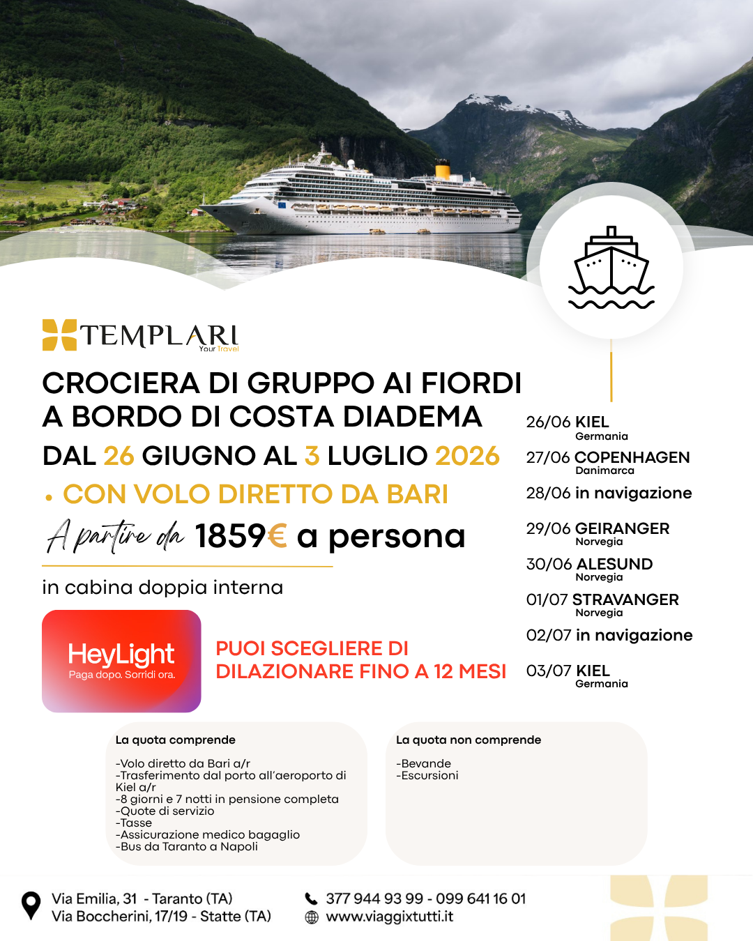 Crociera di gruppo ai Fiordi a bordo di Costa Diadema