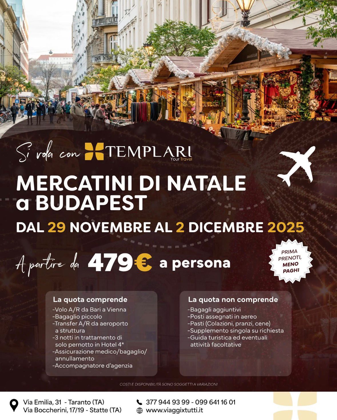 • Volo da Bari a Budapest il 29 Novembre 10:20 – 11:55;
