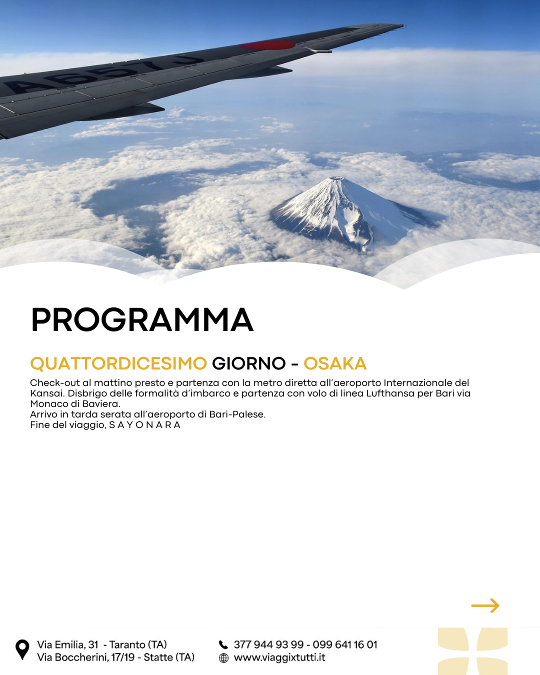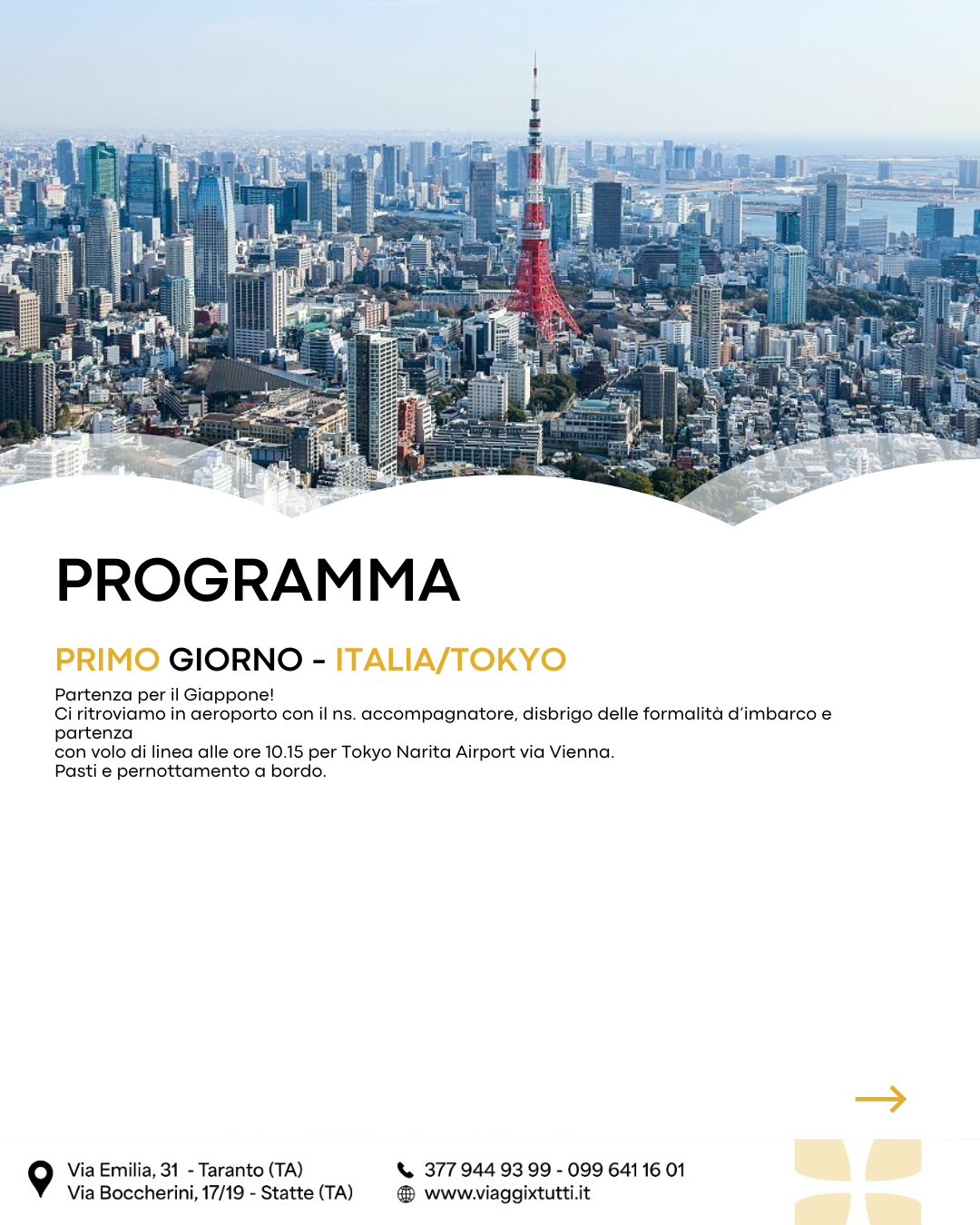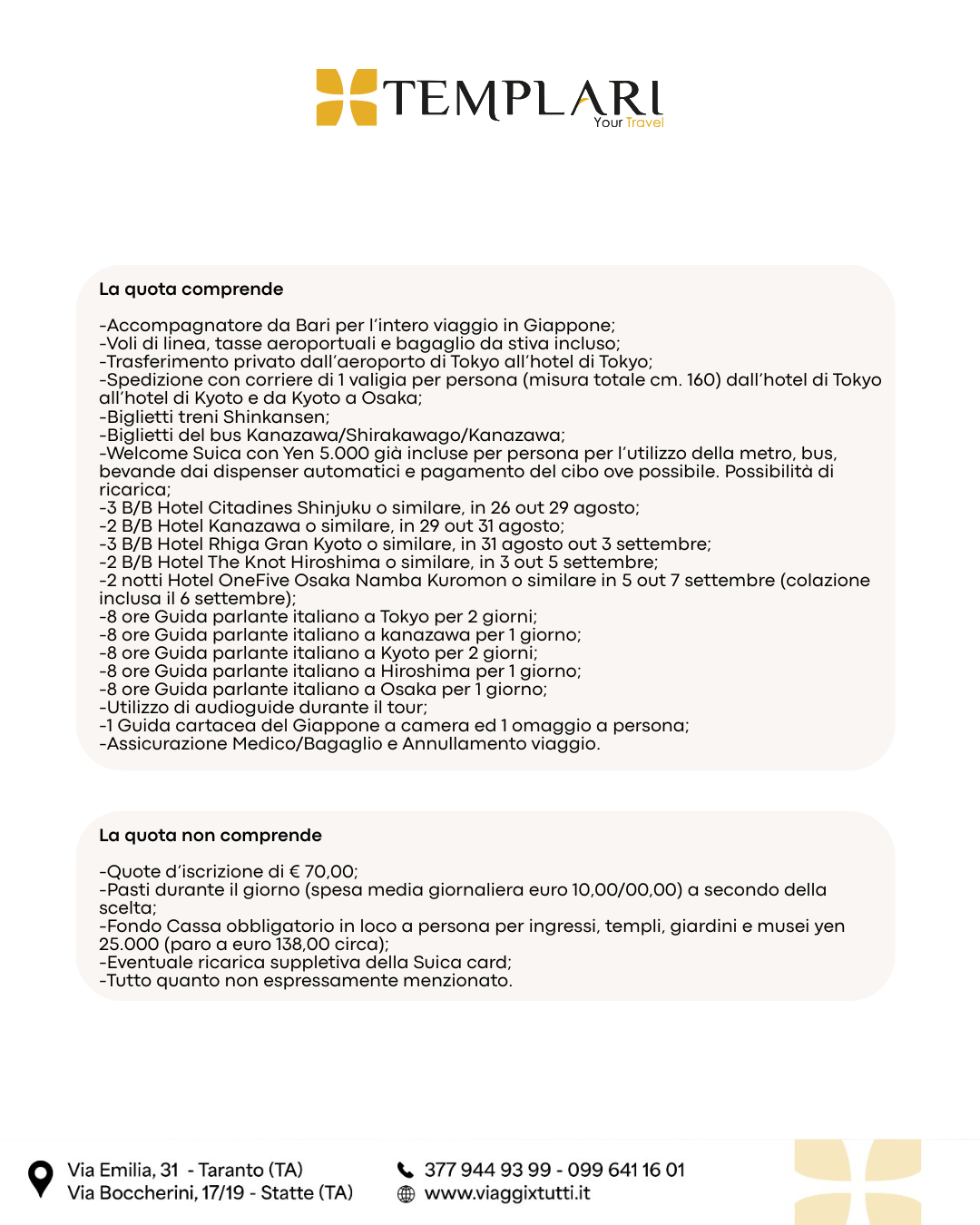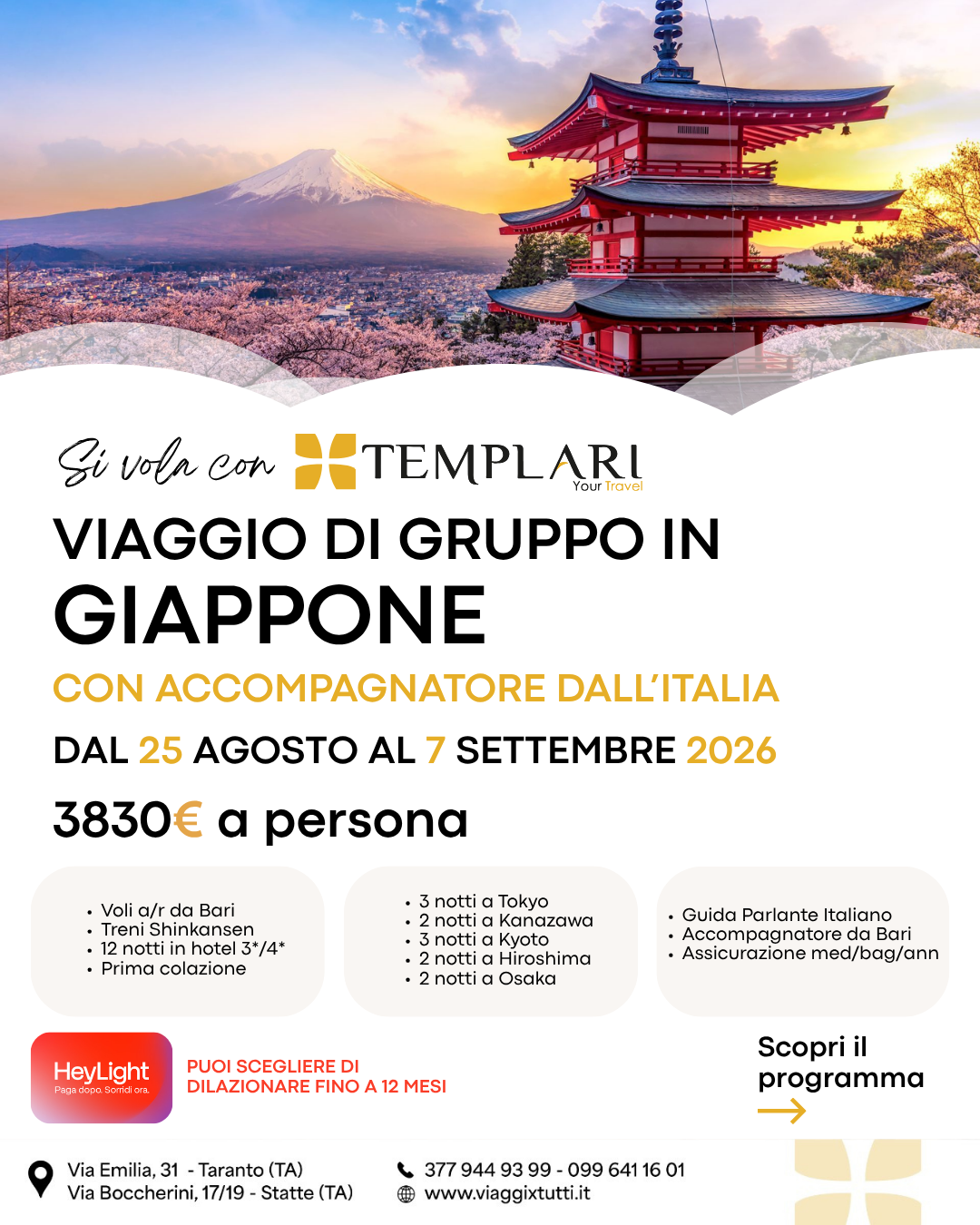 - Accompagnatore da Bari per l’intero viaggio in Giappone;