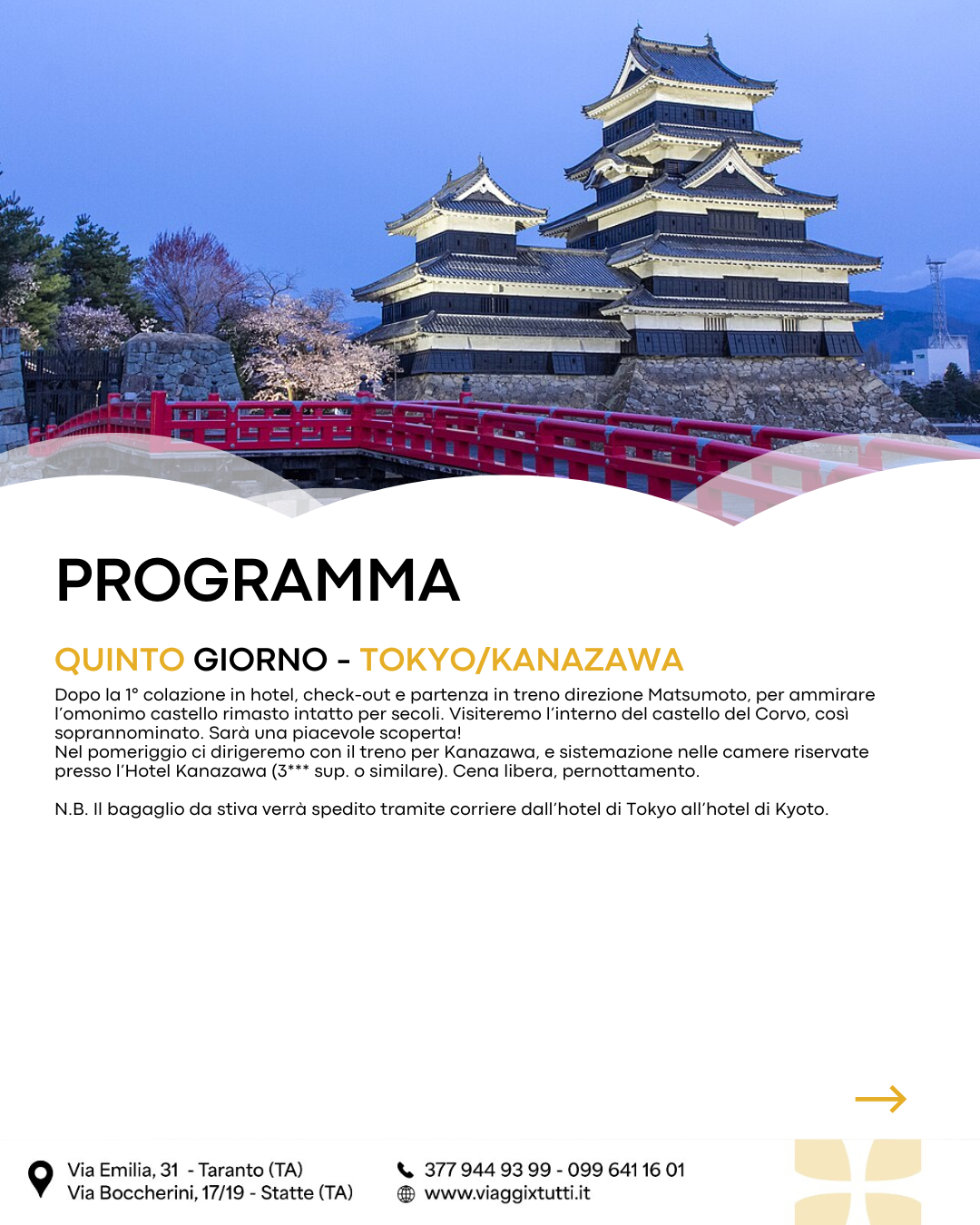 QUINTO GIORNO – TOKYO/KANAZAWA